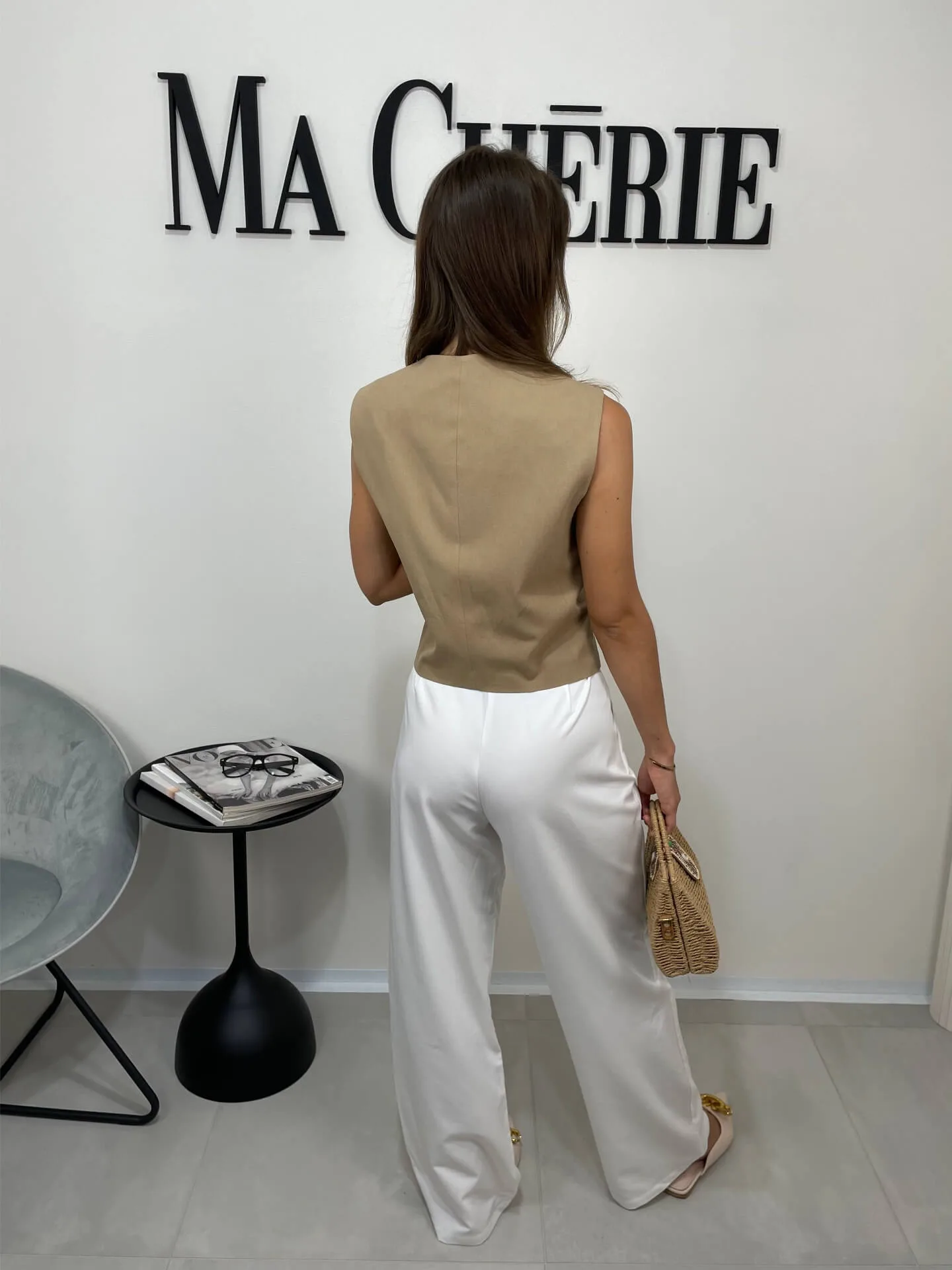 Klasické širší bílé elegantní kahoty, klasická délka, boční kapsy.