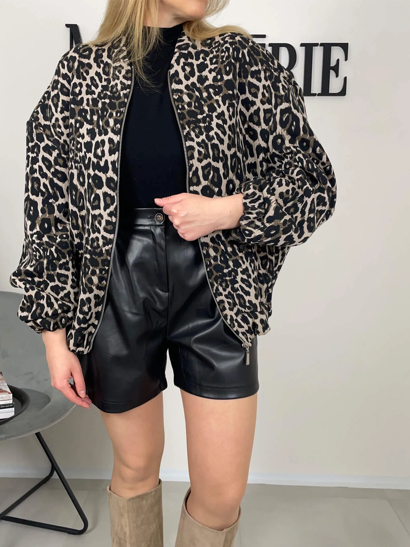 Volný oversized střih, v pase guma, bez podšívky, zapínání na zip, postranní kapsy.