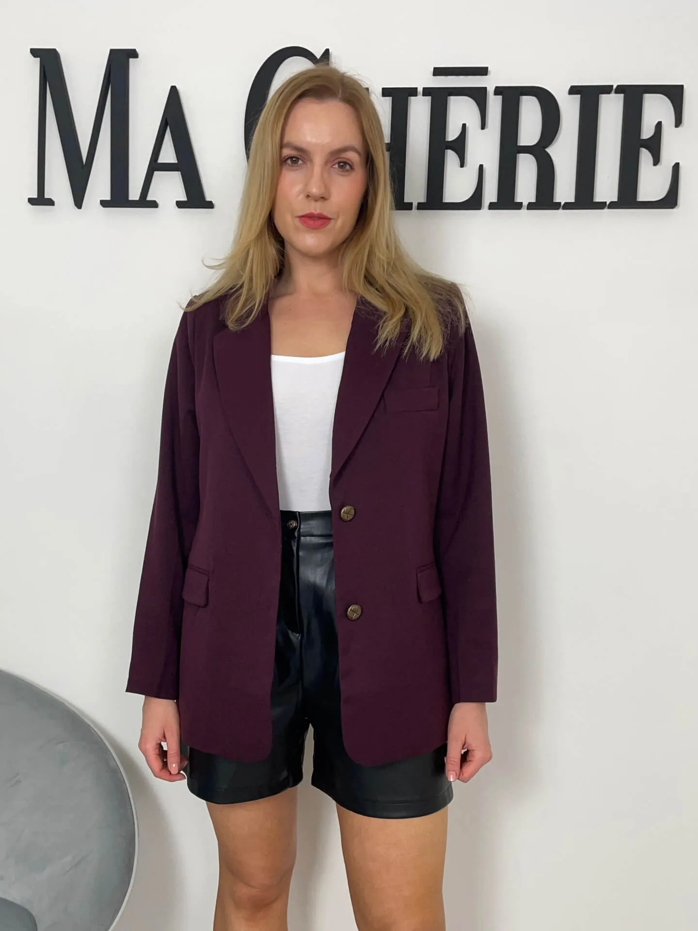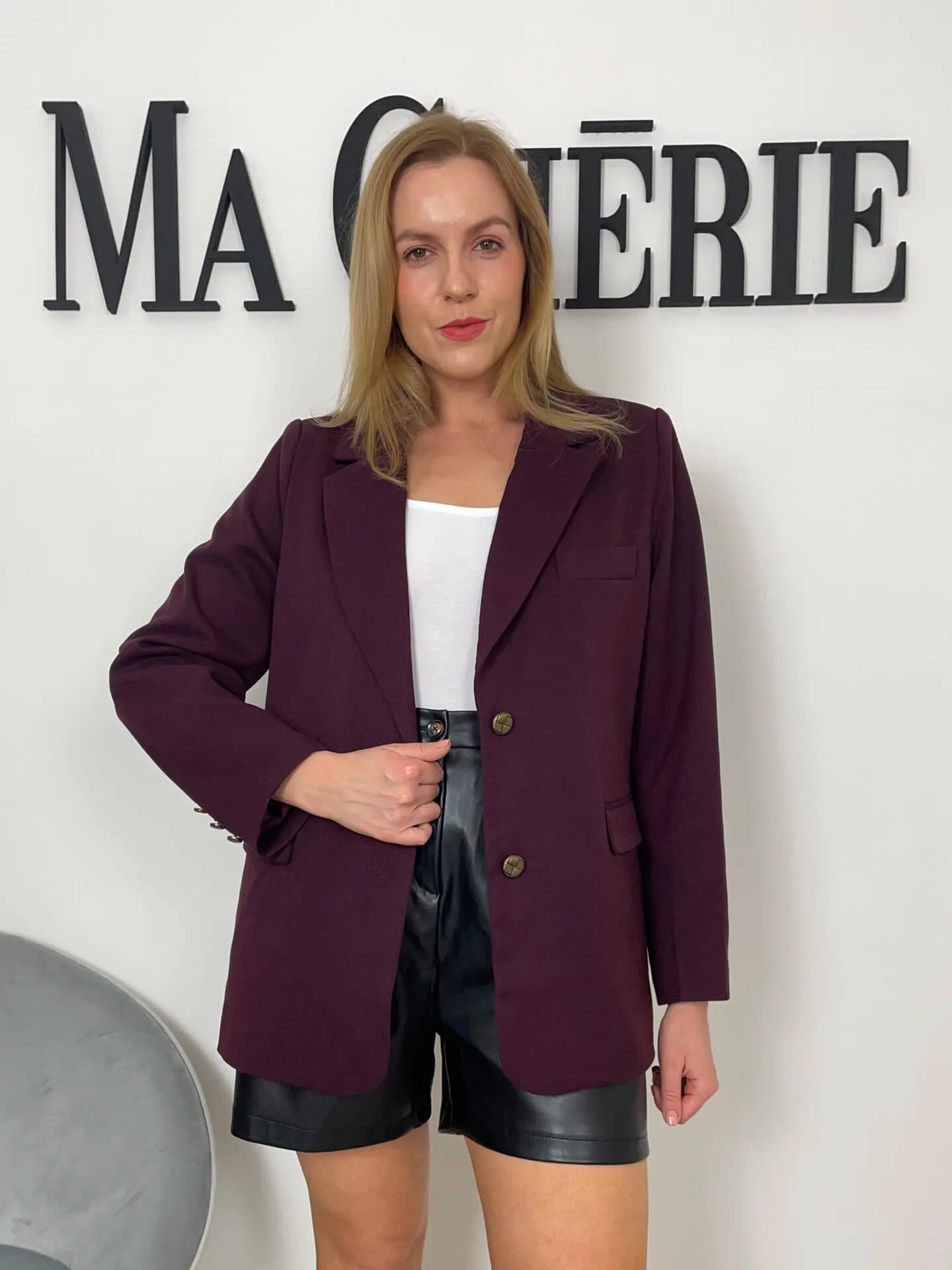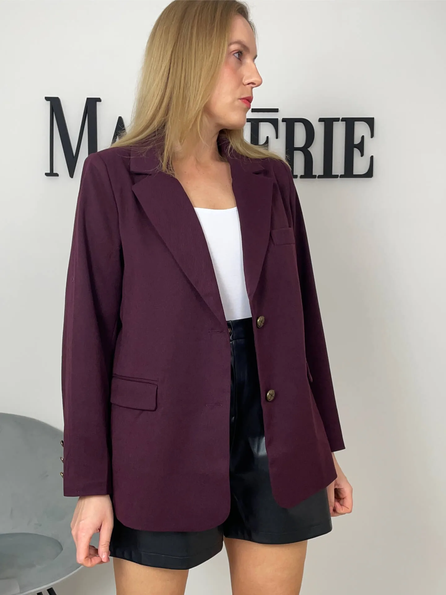 Elegantní vínové sako, zapínání na dva knoflíky, s podšívkou.